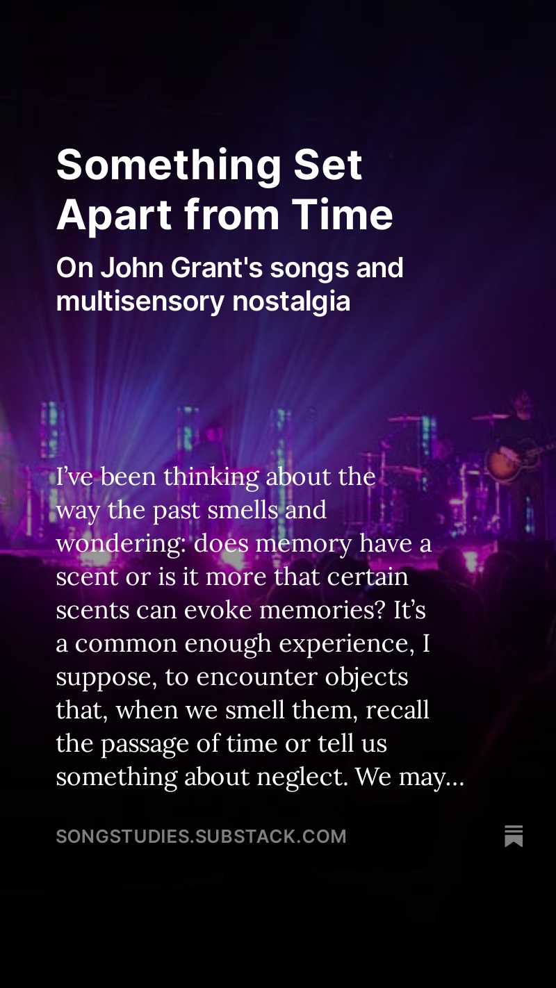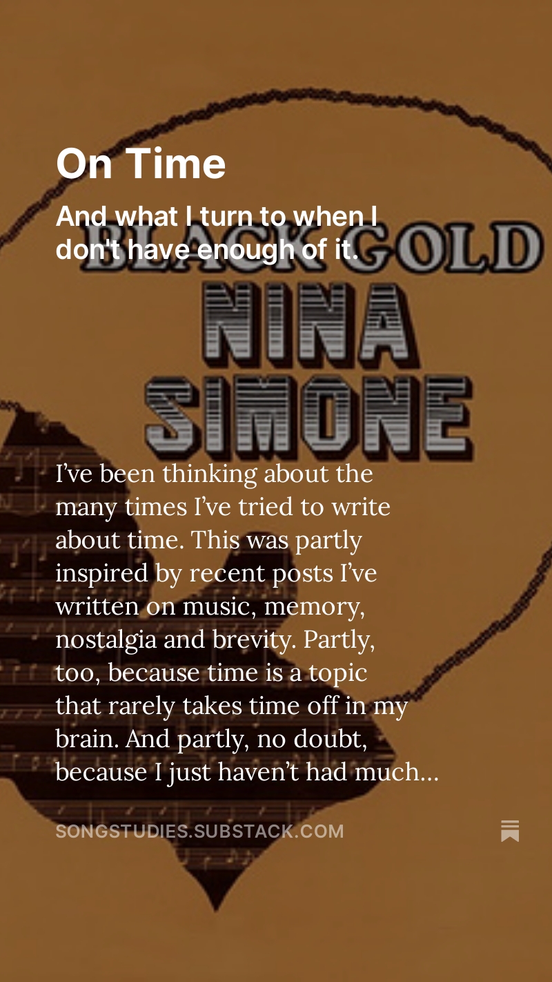 I’ve been continuing to publish weekly posts to the Songs and Objects Substack. Posts since the start of this year cover topics such as seasonal songs (with a focus on January and the turning of the year), a three-parter on the songs of Mary Chapin Carpenter, a piece of life writing that maps songs on to stages in my life, an essay on multisensory nostalgia in the work of John Grant, a piece on brevity and one on time.
